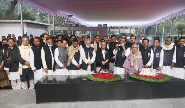 Online Desk: Awami League paid tribute at the portrait of Father of the Nation Bangabandhu Sheikh Mujibur Rahman on the occasion of Martyred Intellectuals Day today.